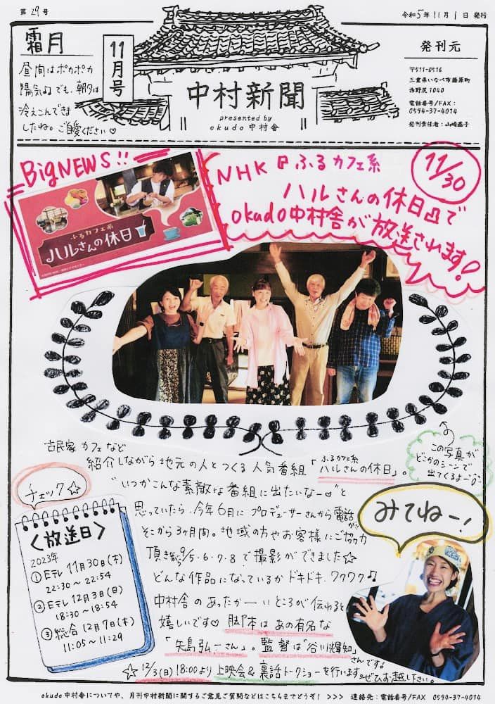 今月も内容盛りだくさん!Webで、中村舎でリアル紙面で読んでくださると嬉しいです♡次号で、なんと30号!!いつか製本して、『中村新聞文集』として本にしたいと思います(๑˃̵ᴗ˂̵) 【okudo中村舎】営業日 木、金、土 … 続きを読む 【中村新聞11月号】