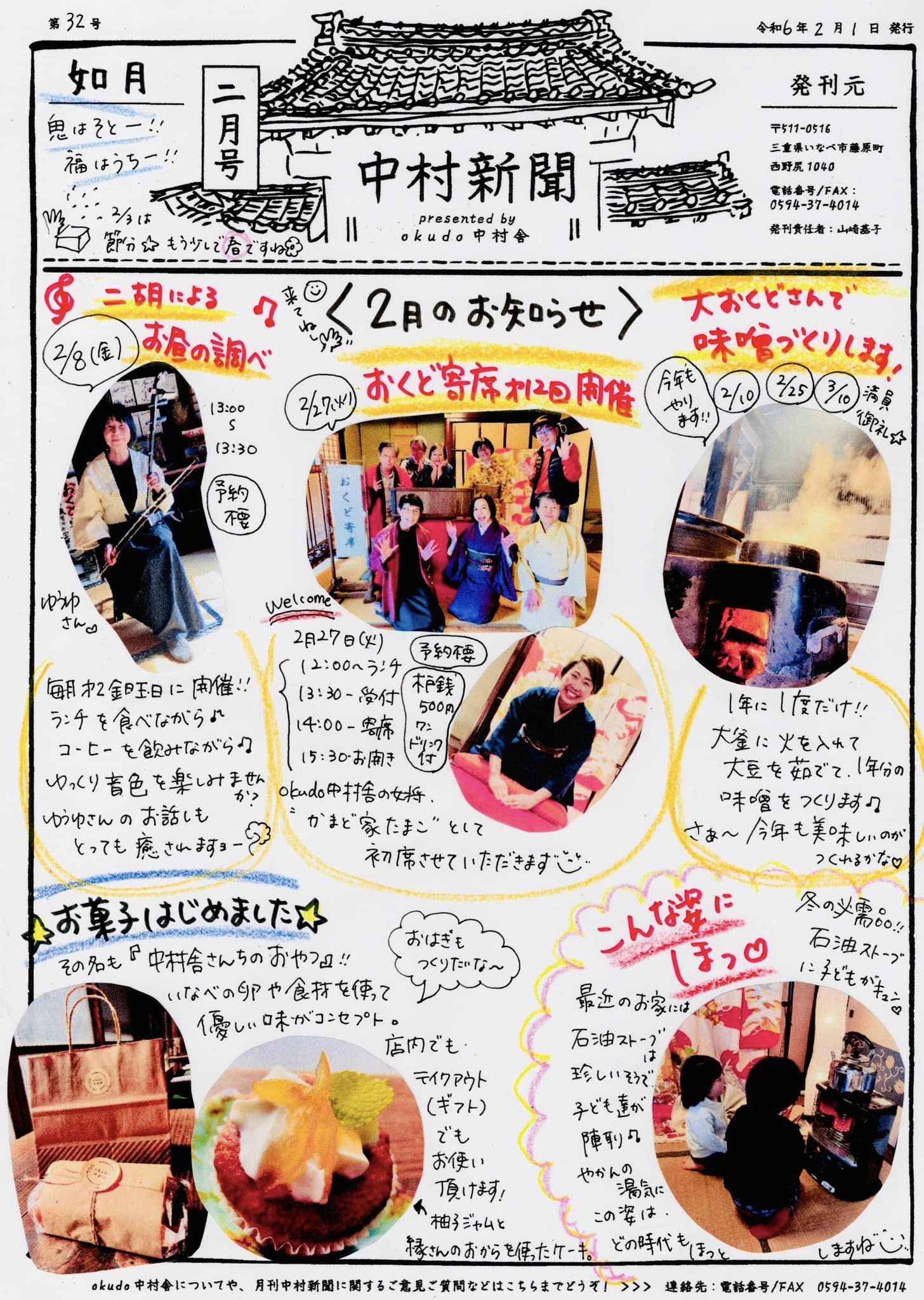 中村新聞31号となりました^ ^今月のお知らせや、1月のあれこれのエピソードが書いてあります。今年から各テーブルにあるメニューの後ろに、中村新聞を挟むようにしました。そうしたところ!お料理が出てくる間や食べ終わってまった … 続きを読む 【中村新聞2月号】